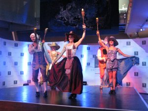 A főattrakció július 15. és 17. között természetesen az ExperiDance volt. A nézőközönségünk a pavilon jövő-menő látogatóiból állt össze, akik amint meglátták az első mozdulatokat, tátott szájjal, lecövekelve nézték végig a műsort. Táncosaink tökéletesen, fegyelmezetten táncolták végig a napi négy fellépést, annak ellenére, hogy 40 fok és áramszünet nehezítette a dolgukat. Nem beszélve a szúnyogokról, akik azért támadtak, mert az expo egy lecsapolt lápvidékre épült, úgyhogy a kis vérszívók vissza akarták foglalni a területüket 🙂